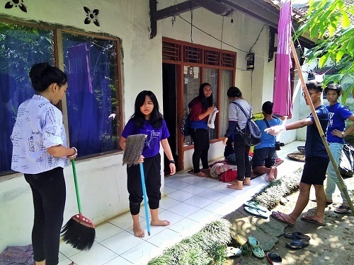 Sementara itu, remaja lainnya yang berada di luar rumah memungut sampah-sampah di pekarangan rumah penduduk.